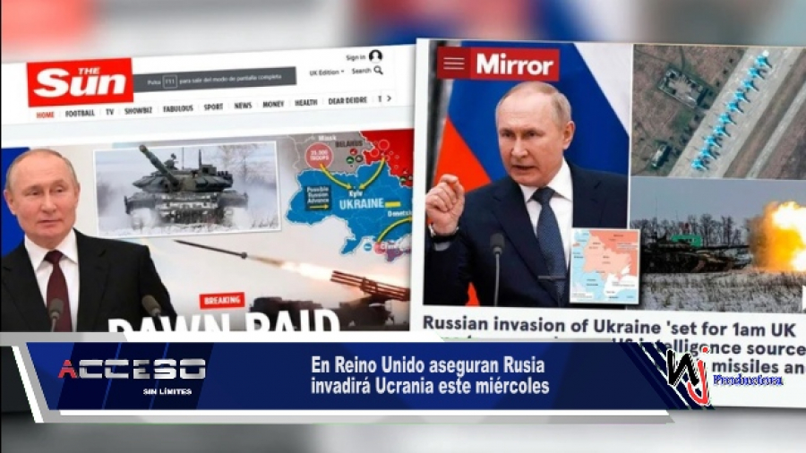 “Rusia se dispone a invadir Ucrania a la 1 de la madrugada de mañana con un bombardeo masivo de misiles y 200.000 soldados”, señala el primero de los medios citados. “Fuentes de alto nivel dijeron que los preparativos para defender la nación asediada continuarían, a pesar de los informes de que Putin estaba retirando algunas tropas de la frontera”, indicó el diario británico.