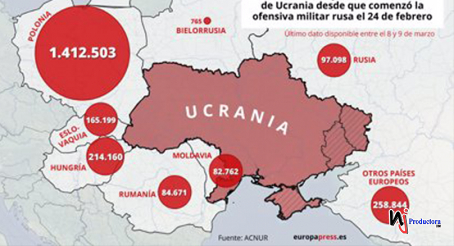 Sólo a Polonia ya han llegado 1,4 millones de refugiados, mientras que Hungría y Eslovaquia han recibido 214.000 y 153.000, respectivamente. A Rumanía corresponden otros 84.000, mientras que Moldavia ya supera los 82.000.