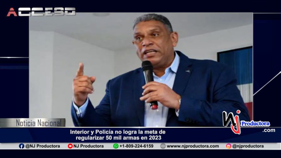 El Ministerio de Interior y Policía (MIP) no logró la meta de regularizar 50,000 armas de fuego durante el año 2023.Al menos 37,185 licencias para porte y tenencia de armas fueron tramitadas ese año, 12,815 menos que el objetivo trazado. Para un 74.37% de logro.Para este año 2024, el MIP está menos ambicioso, ya que tiene previsto regularizar un estimado de 40,000 armas, según consta en la memoria de la institución entregada al Congreso Nacional el pasado 27 de febrero.El órgano, que dirige Jesús (Chu) Vásquez Martínez, informó que en el año 2023 fueron tramitadas un total de 37,185 licencias de tenencia y porte de armas de fuego, y entregadas 2,710 certificaciones de registro de armas para persona física y/o jurídica.Con las iniciales “R.D.” fueron marcadas 690 armas de fuego; retenidas 5,705 por diferentes motivos a través de los organismos que intervienen en la recolección de armas; y realizadas 26,851 pruebas balísticas y biométricas. En todo esto se invirtió la suma de RD$98,482,359.40.Mientras, durante el año anterior (en 2022) hubo un total de 1,799 armas de fuego marcadas con las iniciales “R.D.” en todo el territorio nacional. En comparación al 2023 hay una diferencia de 260.72%: casi tres veces menos. En esos dos años hay un aumento de 342.03% en armas de fuego retenidas, ya que en el 2022 fueron reportadas 1,668. Contrario a las 5,705 registradas en el 2023.En resumen, desde agosto de 2020 hasta el cierre de diciembre de 2023 se reportan 17,074 armas retenidas o incautadas por los diferentes organismos de seguridad Estatal.El Ministerio de Interior y Policía registra para el año pasado un total de 804 armas de fuego entregadas “de manera voluntaria”. Asimismo, aclara que se mantiene en desarrollo el diseño de una campaña “No a las Armas Ilegales” para promover la entrega libre de armas ilegales.Durante el año 2023 fueron ejecutados 50,867 operativos de supervisión para el control de horario, obstrucción a la vía pública, contaminación sónica y otros; 12,399 inspecciones realizadas a nivel nacional; 1,130 comercios notificados; y 420 negocios sancionados. Fueron impartidas 246 charlas de concientización a 1,740 propietarios de establecimientos. Se invirtió en estas acciones un total de RD$137,815,577.19.El Ministerio de Interior y Policía también resaltó que se realizaron cinco actos de lanzamiento del Programa “De Vuelta al Barrio”, que impactaron a más de 25,000 personas residentes de las provincias La Romana; Santo Domingo, Santiago y Peravia.En mayo de 2023, el ministro de Interior y Policía, Jesús Vásquez Martínez, recibió de la fiscal Smaily Yamel Rodríguez 719 armas decomisadas en la provincia Duarte. Se trató de la mayor cantidad entregada ese año por el Ministerio Público. Entre esas armas había 526 pistolas, 140 revólveres, 51 escopetas y dos rifles, los cuales se incautaron o cumplieron su rol como evidencia en distintos casos judiciales, según se informó en ese momento.