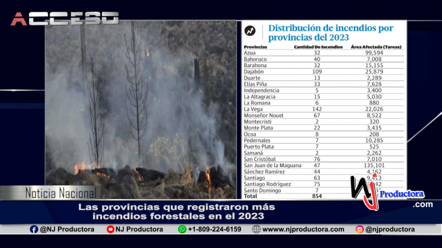 El 2023 se alzó como un año récord en términos de ocurrencia de incendios forestales en República Dominicana, dejando como resultado demarcaciones que, en algunos casos, registraron hasta cinco veces más siniestros en comparación con las estadísticas reportadas por las autoridades en 2022. Las memorias institucionales del Ministerio de Medio Ambiente correspondientes al 2023 citan el caso de La Vega, provincia que encabezó en 2022 el listado de zonas con más incendios con 45 siniestros, una cifra que aumentó a 142 o la provincia de Dajabón, que pasó de 20 a 109 incendios en un año.San Cristóbal, que en 2022 fue el escenario de 10 incendios forestales, un año más tarde registró 76 fuegos. La misma situación de aumento se observó en Santiago Rodríguez, que de 28 incendios en 2022 pasó a 75 en 2023 o Monseñor Nouel, que en la distribución de incendios forestales por provincias de 2022 contaba cuatro incendios, mientras que en la del pasado año registra 67 fuegos.El año pasado, que fue descrito por la ciencia como el más caluroso desde que existen registros, el país fue el escenario de 854 incendios forestales que afectaron 385,860 tareas a nivel nacional. San Juan de la Maguana se alzó entre las demarcaciones con mayor número de tareas impactadas (135,101), posición que en 2022 ocupó Pedernales (252,760).En las memorias institucionales, Medio Ambiente destacó "el fortalecimiento de la capacidad de respuesta ante eventos de incendios forestales", con una inversión de 6,070 millones de pesos. En sus proyecciones para este año, el Ministerio prevé un incremento de la cobertura forestal del país, además de la restauración de las áreas que están degradadas por el cambio de uso de suelo o ante la ocurrencia de estos siniestros. "El Plan Nacional de Reforestación y Restauración de Ecosistemas Forestales 2023-2024, que plantea alcanzar a agosto de 2024 una superficie reforestada de 320,000 tareas en 31 provincias", señala el documento.Las memorias reiteran que las labores agropecuarias (conuquismo, ganadería, quema de residuos agrícolas, entre otros) son la causa del 68% de los siniestros, seguidos por las actividades antrópicas como colmeneros, cables eléctricos, quema de basura, solares y desbroce a orillas de las carreteras (13%). Las autoridades agregaron que "el 12 % de las causas de los incendios forestales registrados en el 2023 no pudo ser determinada, por lo que se consideraron desconocida". Se recuerda que, a principios de febrero, Gerónimo Abreu, encargado del Programa Nacional de Gestión y Manejo del Fuego del Ministerio de Medio Ambiente, informó que ese organismo empleará diversas herramientas digitales para que las autoridades dispongan de informaciones en tiempo real sobre los siniestros que ocurran en el país."En principio va a estar disponible para el equipo técnico del Ministerio porque es una plataforma que estamos adquiriendo ahora; vamos a comprar un software que, digamos, que va a estar disponible de por vida", explicó el funcionario a Diario Libre en el marco del lanzamiento de la "Temporada de prevención de incendios forestales 2024".