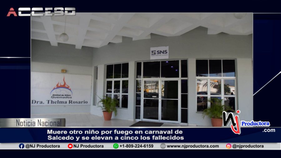 Se elevó a cinco el número de personas fallecidas a causa del fuego registrado el domingo 10 de marzo en el desfile del carnaval de Salcedo, en la provincia Hermanas Mirabal. La nueva víctima mortal es el niño Aquel Diloné, de 11 años de edad.Su deceso se produjo en la unidad de quemados Thelma Rosario que opera en el hospital pediátrico regional universitario Arturo Grullón, de Santiago.El menor presentaba quemaduras de consideración en gran parte de su superficie corporal.Otros dos menores de edad que resultaron afectados por el incendio durante la actividad cultural permanecen ingresados en ese centro hospitalario. Los lesionados tienen 8 y 12 años.Desde la unidad de quemados del pediátrico informaron que los tres pacientes permanecen en un estado crítico.El hecho ocurrió cuando el grupo de carnaval Los Toros se preparaba para su espectáculo de salida de la cueva de macarao, al encender una caja de fuegos artificiales."Una chispa hizo contacto con los trajes de papel de los grupos Los Toros y Toritos y dejó como resultado 18 personas con quemaduras en diferentes partes de su cuerpo.