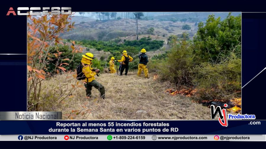 El Ministerio de Medio Ambiente y Recursos Naturales informó este sábado que miembros de los bomberos han sofocado alrededor de 55 incendios forestales registrados durante asueto de Semana Santa en varios puntos de República Dominicana. De acuerdo con un comunicado de prensa, estos incendios se realizaron, en su mayoría, por práctica del conuquismo (quema de bosque para producir carbón y para la agricultura). Ante esta situación, la entidad recordó a los agricultores que el país se encuentra en la época de sequía, por lo que les recomendó tomar las precauciones de lugar para evitar la ocurrencia de incendios ya que pueden impactar negativamente en los bosques y en la biodiversidad del país. El director del Programa Nacional de Manejo del Fuego, Gerónimo Abreu, mencionó que los lugares donde se han producido incendios forestales son: Sierra de Bahoruco, Sierra de Neyba, Cordillera Central, en el área entre Santiago Rodríguez y San José de las Matas, Constanza, Tireo y Villa Altagracia. "En la Sierra de Bahoruco hoy estamos liquidando un incendio que inició en territorio haitiano y afectó unas 1,800 tareas de bosque de pino en el lado de República Dominicana", explicó Abreu.Al referirse al caso de Sierra de Neyba, indicó que, en la vertiente sur, en las provincias Independencia y Bahoruco, se han originado unos seis incendios, los cuales afectaron alrededor de 2,500 tareas, parte de ellas cubiertas por plantaciones jóvenes realizadas por los proyectos de Desarrollo Agroforestales.Agregó que en la parte norte de la Sierra de Neyba, los incendios originados y combatidos esta semana han sido ocho, especialmente en Hondo Valle, Elías Piña y San Juan. En esta parte resultaron afectadas aproximadamente 4,000 tareas, gran parte de ellas de bosque natural, parte de plantaciones, matorrales y pasto.En el caso de la vertiente sur de la Cordillera Central, las áreas de mayor actividad fueron en las provincias de Azua y San Juan, donde sofocaron unos 11 incendios forestales que afectaron alrededor de 5,000 tareas, la mayoría de estas cubiertas de pastos y matorrales, en algunos casos con bosque natural y plantaciones.Manifestó que en el área comprendida entre Santiago Rodríguez y San José de las Matas los bomberos forestales atendieron unos cuatro incendios que afectaron alrededor de 1,300 tareas cubiertas de bosque natural y pasto, en esa zona la causa principal es la tumba y quema para ganadería, mientras que en la parte sur es para agricultura.Mientras que, en el municipio Constanza, provincia La Vega, sofocaron otros cuatro incendios que afectaron unas 110 tareas de plantaciones y bosque natural.En tal sentido, en Monseñor Nouel se combatieron tres incendios, en Villa Altagracia dos incendios, estos últimos afectaron alrededor de 400 tareas.