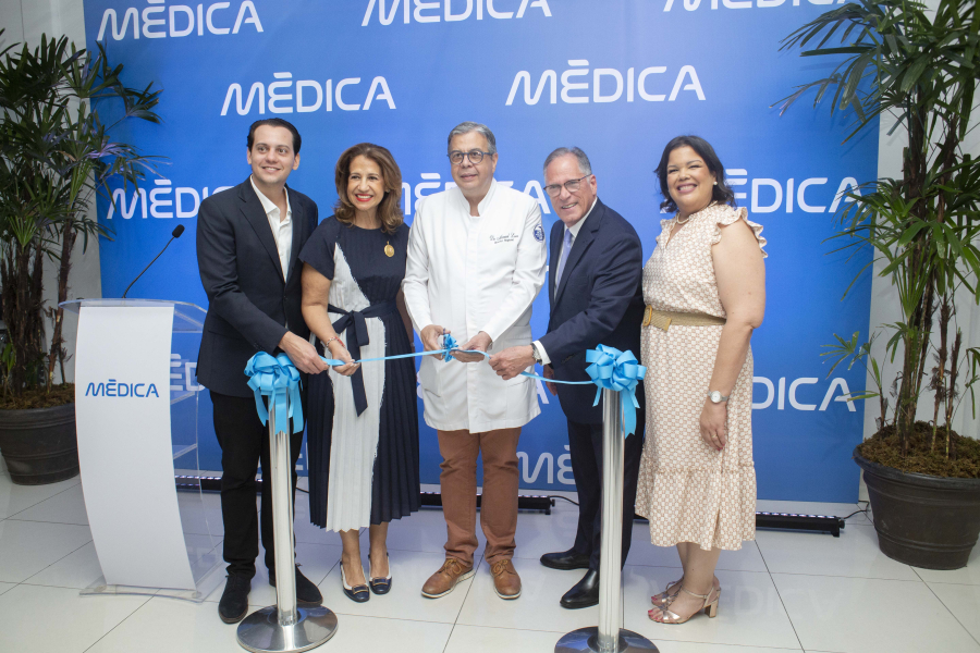 El simbólico corte de cinta, fue realizado por: el Dr. Manuel Lora Perelló, director del Servicio Regional de Salud Norcentral; Dr. Marcel Morel, presidente de la junta directiva de Mēdica; Dra.Mercedes Carmen Capellán, vicepresidenta de Mēdica; Miguel Lama Rodríguez, presidente de la Corporación Zona Franca Santiago y Laurina Rodríguez, directora ejecutiva de Mēdica.