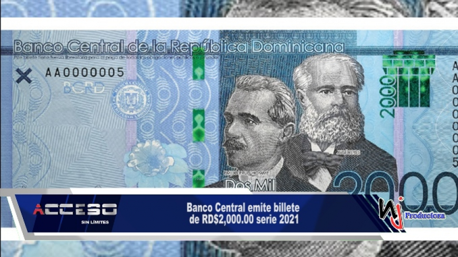 El Banco Central de la República Dominicana (BCRD) informa que a partir del 1 de diciembre circula un billete de RD$ 2,000.00 pesos dominicanos serie 2021, cuya fabricación se ordenó mediante licitación pública internacional en enero de 2021, que contiene las mismas características del billete con el mismo valor en circulación, el cual mantendrá su fuerza liberatoria para el pago de todas las obligaciones públicas y privadas.