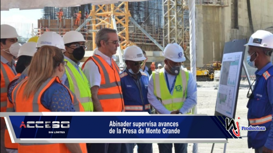 El presidente Luis Abinader volvió a observar los trabajos que se realizan en la presa de Monte Grande, donde informó que los contratistas de la obra le aseguraron que ha mediado del 2022 estará lista la primera parte de la mega infraestructura.