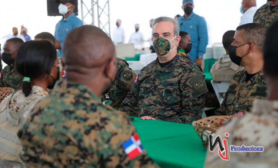 El presidente Luis Abinader se vistió este jueves de militar y en la Fortaleza Estrelleta, de este municipio, almorzó con decenas de miembros del Ejército Nacional ante los cuales resaltó la importancia del rol que ellos desempeñan en la defensa y seguridad de la Patria.