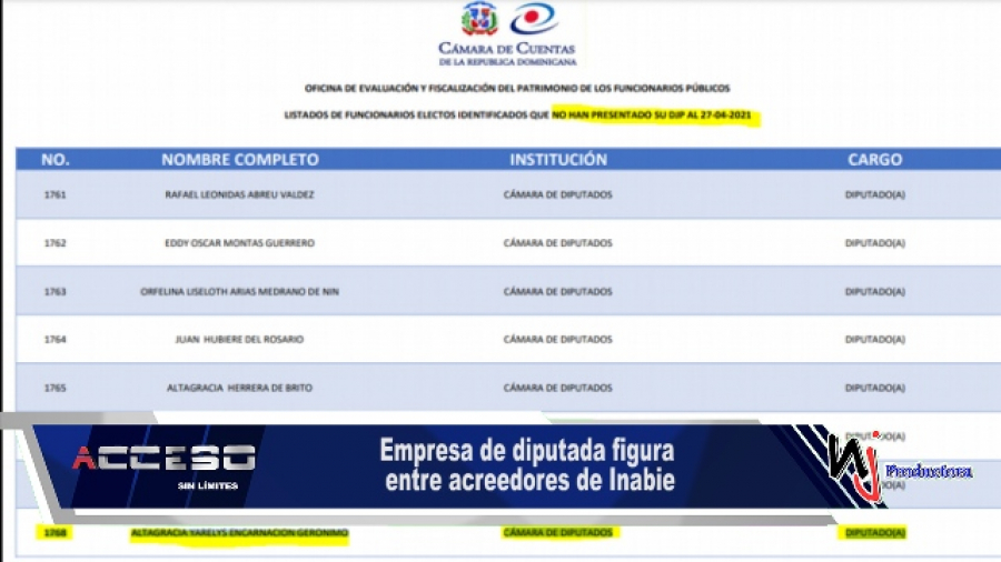 Una empresa de la diputada Altagracia Yarelys Encarnación Gerónimo figura entre los suplidores que reclaman pago de deudas al Instituto Nacional de Bienestar Estudiantil (Inabie).