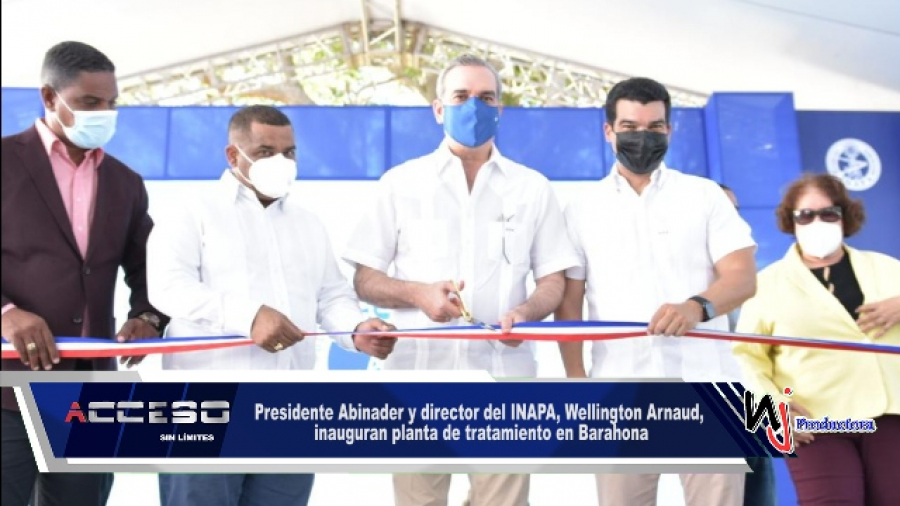 El presidente Luis Abinader y el director ejecutivo del Instituto Nacional de Aguas Potables y Alcantarillados (INAPA), Wellington Arnaud, inauguraron este domingo la planta de tratamiento de aguas residuales del municipio de Barahona, a un costo de RD$62, millones 500,000 mil pesos.