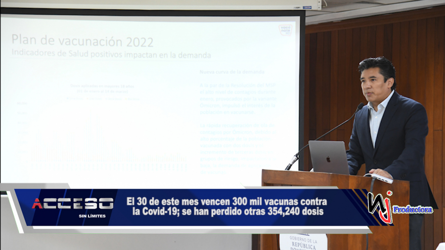 El Ministerio de Salud Pública (MSP) informó que el 30 de este mes vencen 300 mil vacunas contra la Covid-19, que se sumarían, de no ser aplicadas antes de esa fecha, a las 354,240 dosis que caducaron por fecha de vencimiento.