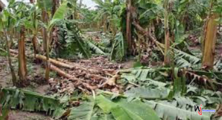 Más de 30 mil tareas sembradas de plátanos han resultado afectadas en la región norte de la República Dominicana debido a las lluvias, vientos y granizadas de los últimos días, según dirigentes agropecuarios.