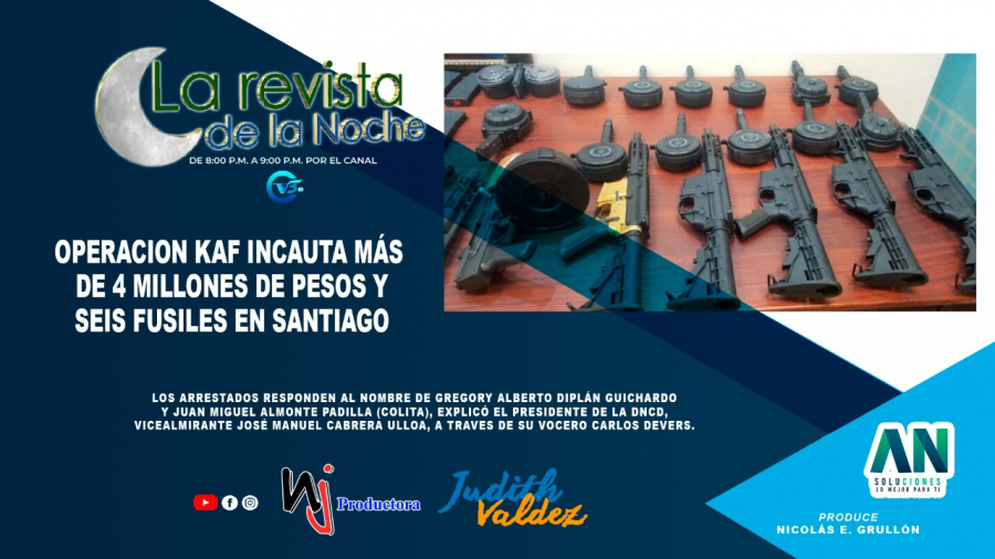 Con el nombre de Operación KAF, la Dirección Nacional de Control de Drogas (DNCD) y el Ministerio Público de Santiago apresó este viernes a dos personas. Asimismo, ocupó seis fusiles, dos pistolas, 6,796 cápsulas, más de 4 millones de pesos y más de 17 mil dólares.