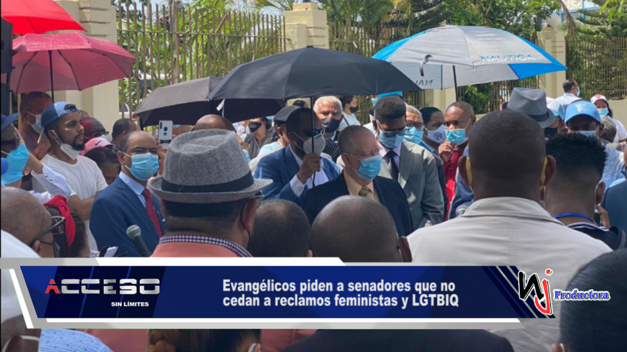 Representantes de varias iglesias evangélicas se manifestaron frente al Congreso Nacional para pedir a los senadores que no cedan a las demandas de los grupos feministas y de la comunidad LGTBI, que exigen la protección de sus derechos en el proyecto del Código Penal.