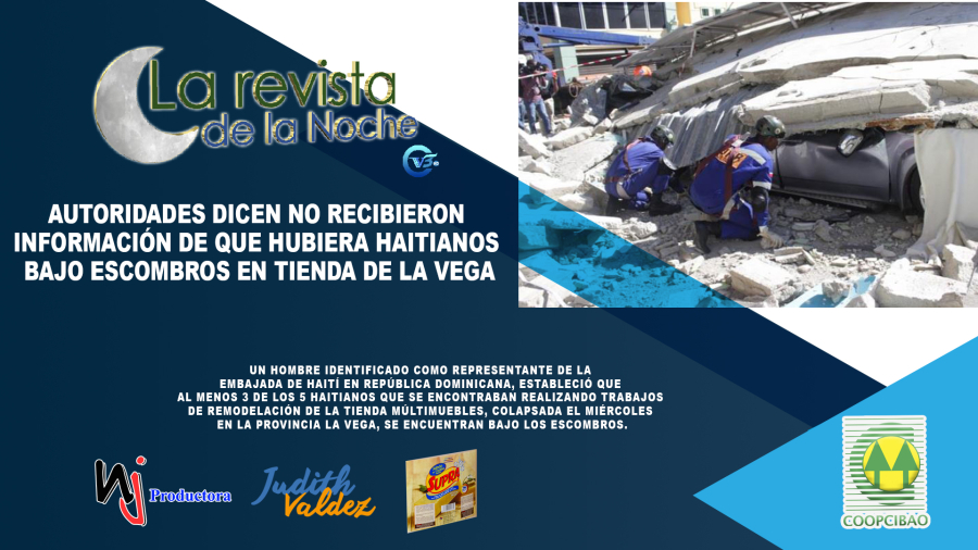 Un hombre identificado como representante de la embajada de Haití en República Dominicana, estableció que al menos 3 de los 5 haitianos que se encontraban realizando trabajos de remodelación de la tienda Múltimuebles, colapsada el miércoles en la provincia La Vega, se encuentran bajo los escombros.“Hay 5 trabajando aquí. Dos salieron, hay tres que están todavía” expresó el extranjero quien fue entrevistado el miércoles por un medio de noticias de la región norte desde el lugar del derrumbe.