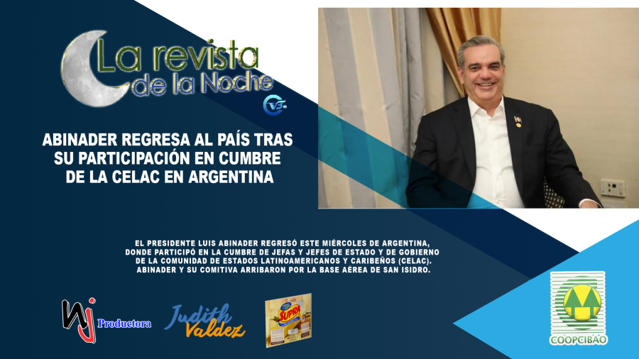 Mandatario arribó esta mañana en vuelo por Base Aérea de San IsidroEl presidente Luis Abinader regresó este miércoles de Argentina, donde participó en la Cumbre de Jefes de Estado y de Gobierno de la Comunidad de Estados Latinoamericanos y Caribeños (CELAC).Abinader y su comitiva arribaron por la Base Aérea de San Isidro.La nota de prensa de la Presidencia, destaca la intervención en el evento del presidente Abinader, quien lamentó que no se haya hecho nada ante el llamado del gobierno haitiano para que se vaya en auxilio de ese país.