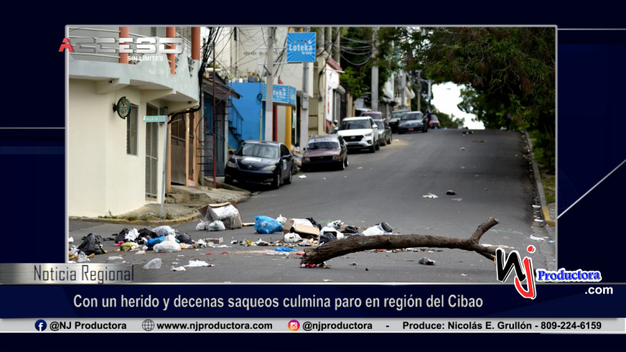 Con al menos un herido y decenas de saqueos culminó este martes a las 6:00 de la mañana el paro en catorce provincias de la región del Cibao que por 24 horas había convocado por la Coalición de Organizaciones Sociales, Feministas, Ambientales y Gremiales en demanda de aumento general de salarios, rebaja de los alimentos, combustibles, medicamentos, mejoras en el sistema de salud y de pensiones, construcción de carreteras y asfaltado de calles, entre otras reivindicaciones.