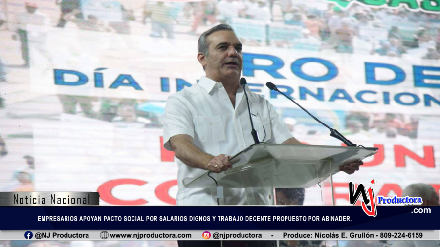 El presidente de la República, Luis Abinader, llamó ayer a los sectores del país a desarrollar un plan para alcanzar un pacto social por el empleo decente y salarios dignos. Aprovechando este importante día, lanzamos al país y, específicamente a los actores sociales del tripartismo, nuestra propuesta de un pacto social por salarios dignos y trabajo decente, de largo plazo”, expresó al encabezar el acto por el Día Internacional de los Trabajadores este 1 de mayo, convocado por centrales sindicales y celebrado en el Pabellón de Voleibol del Centro Olímpico.Dijo que a través del pacto se busca garantizar un aumento planificado, acordado, y continuo de los salarios mínimos para que estos logren la cobertura de la canasta básica familiar “y con ello brindar a la sociedad una base firme de paz social sobre la cual las futuras generaciones de dominicanos y dominicanas puedan construir sus sueños y materializar sus anhelos”."Le pido al ministro de Trabajo (Luis Miguel De Camps) que le dé seguimiento a ese plan y en los próximos meses lo podamos firmar como otro logro del consenso, la visión de futuro y de país que tenemos como sociedad", indicó el mandatario.MicroempresariosTras el llamado del presidente el sector empresarial se mostró de acuerdo, pero algunos entienden que bajo el actual Código Laboral y Ley de Seguridad Social (87-01) “no es posible” ya que ambos penalizan con costos salariales “excesivamente” altos a las empresas del país. “Por cada peso de salario el empresario paga 1.65 pesos que el empleado no ve. Si esos costos salariales se eliminan se les puede entregar mensualmente a los trabajadores un monto mayor que cubra la canasta como indica el señor presidente en su postulado”, indicó Luis Miura, presidente de la Confederación Dominicana de la Pequeña y Mediana Empresa (Codopyme).