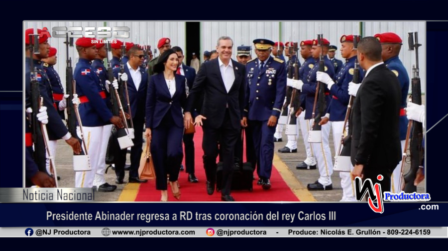El presidente Luis Abinader y la primera dama Raquel Arbaje retornaron a la República Dominicana desde Londres, donde asistieron a la coronación del rey Carlos III y la reina consorte Camila como monarcas del Reino Unido.