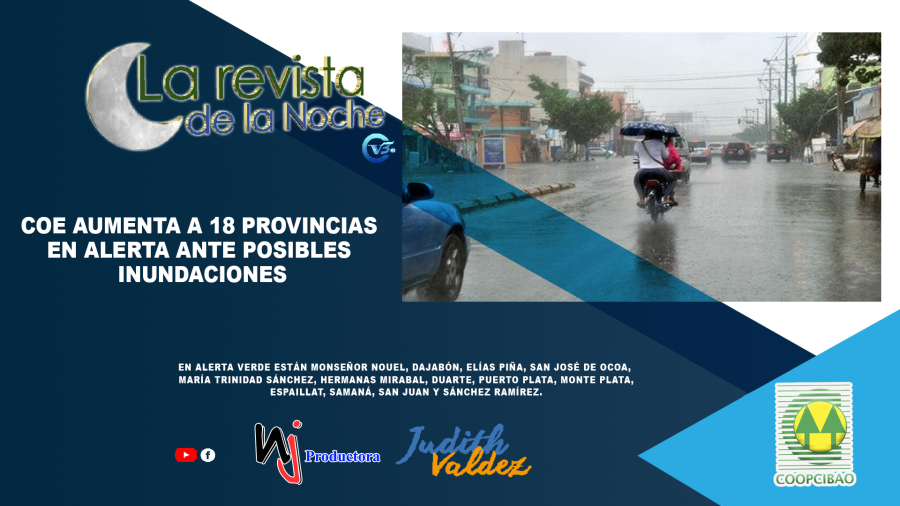 En alerta verde están Monseñor Nouel, Dajabón, Elías Piña, San José de Ocoa, María Trinidad Sánchez, Hermanas Mirabal, Duarte, Puerto Plata, Monte Plata, Espaillat, Samaná, San Juan y Sánchez Ramírez.