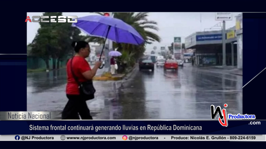La Oficina Nacional de Meteorología informó este lunes que el activo sistema frontal se estará ubicando al oeste de la isla, favoreciendo desde horas de la madrugada, incrementos nubosos acompañados de aguaceros moderados a fuertes con tronadas aisladas y ráfagas de viento hacia provincias del litoral costero Caribeño; al final de la tarde y la noche, esta actividad de lluvias se estará extendiendo hacia las vertientes: noroeste, norte, noreste, la cordillera Central y la zona fronteriza del país.Indica que estas lluvias ocurrirán principalmente sobre las provincias de: El Gran Santo Domingo, San Cristóbal, Peravia, San Pedro de Macorís, El Seibo, Hato Mayor, Monte Plata, San José de Ocoa, Monseñor Nouel, Independencia, Pedernales, Bahoruco, Dajabón, Santiago, La Vega, María Trinidad Sánchez y Sánchez Ramírez.Debido a las lluvias ocurridas y las esperadas en las próximas 24 a 72 horas, la ONAMET modifica los niveles de AVISO y ALERTA METEOROLÓGICA, ante posibles crecidas de ríos, arroyos y cañadas, inundaciones rurales y urbanas, así como deslizamientos de tierra.La Onamet mantiene la recomendación en la costa atlántica, desde La isla Saona hasta Monte Cristi, a todos los operadores de frágiles, pequeñas y medianas embarcaciones de permanecer en puerto debido a vientos fuertes y olas peligrosas.«En zonas montañosas y los valles del interior, principalmente durante las noches, madrugadas y primeras horas de la mañana, las temperaturas estarán agradable».