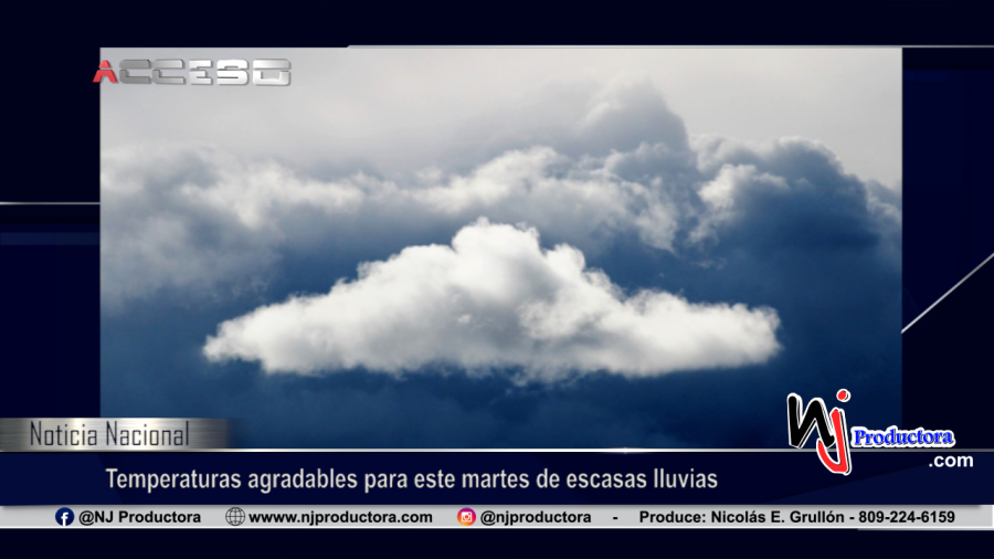 La Oficina Nacional de Meteorología (Onamet) informó que para este martes el país continuará influenciado por el viento del este/noreste y un sistema de alta presión ubicado en el Atlántico central.Estos, según la Onamet, mantendrán limitadas las precipitaciones sobre el territorio dominicano. Además, prevén un cielo mayormente soleado.La institución manifestó que la incidencia de los efectos del ciclo diurno así como del viento de dirección este/noreste provocarán ocasionales incrementos de la nubosidad acompañados de chubascos aislados de corta duración en algunas localidades de las provincias ubicadas en las regiones noreste, sureste, la llanura oriental y la Cordillera Central, principalmente en horas de la tarde.Las temperaturas seguirán agradables a frescas, principalmente en zonas montañosas y valles del interior del país durante la noche y madrugada debido a la época del año y al viento agradable de dirección noreste.Para el Gran Santo Domingo las temperaturas mínimas están entre 18 °C y 20 °C y la máxima entre 28 °C y 30 °C.