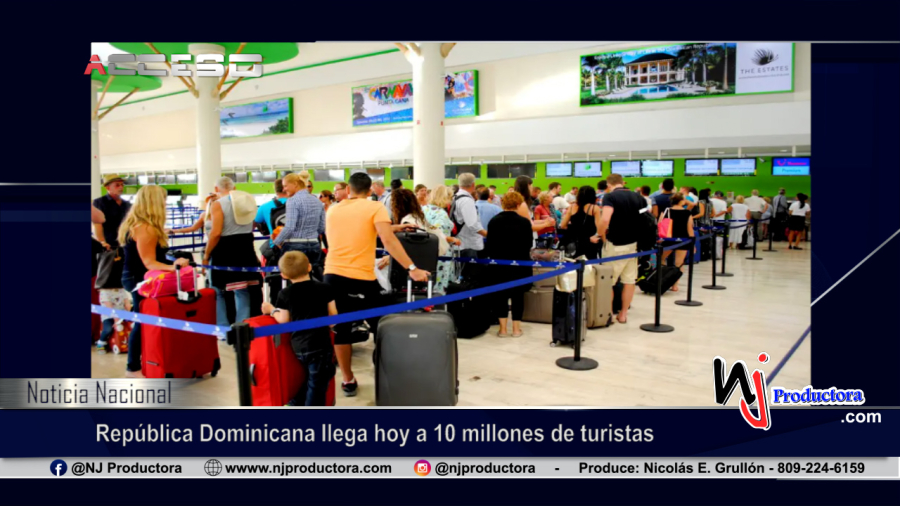 Diez millones de nuevos amigos al doblar la esquina tiene la República Dominicana». Y es que, al día de hoy, si sumamos la llegada de turistas vía aérea y los que ingresan vía cruceros, tenemos nueve puntos nueve millones de visitantes en nuestro país que han impactado nuestra economía», adelantó el ministro de Turismo, David Collado en sus redes sociales.La llegada del pasajero número 10 millones, será por el Aeropuerto Internacional de Punta Cana, lo que marcará un hito en el sector turístico, de una meta que se había planteado el Gobierno Dominicano desde el 2012.Hasta noviembre el había recibido 9,105,043 visitantes en el período enero-noviembre, lo representa un crecimiento de 22% con relación al año pasado, un 103 % respecto al 2021 y un 34% en comparación con el 2019.En ese momento solo por la vía área, habían arribado 636,460, de los cuales 542,229 eran extranjeros y 94,231 dominicanos que viven fuera del país.De esos 636,460 turistas, por la vía aérea, representa un 38% más que los llegaron al país en 2019, un 22% por encima de los del 2021 y un 11% superior a los del año pasado.El turismo de crucero también refleja un crecimiento constante y que solo en noviembre el país recibió 223,393 cruceristas por los diferentes puertos, elevándose así a 1,9913,991 la llegada en los primeros once meses del año.Los principales países emisores de turistas en noviembre fueron Estados Unidos con un 42%, Canadá con 19%, Colombia con 5% y Alemania y Argentina con un 3% cada uno.También el mes pasado, el aeropuerto de Punta Cana recibió el 58% de los turistas, seguido de Las Américas con 26%, Cibao un 10%, Puerto Plata 5% y Romana, Samaná y la Isabela un 1% cada uno. ¡Compártelo con tus amigos!Nj productoraMarcamos la pauta a seguirEsta dirección de correo electrónico está siendo protegida contra los robots de spam. Necesita tener JavaScript habilitado para poder verlo.809-224-6159 cel.