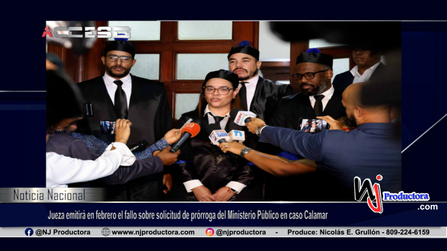La jueza del Segundo Juzgado de Instrucción del Distrito Nacional Ana Lee Florimón fijó para el día 9 de febrero, a las 9:00 de la mañana, la emisión del fallo a la solicitud de prórroga del Ministerio Público para depositar el expediente acusatorio contra los imputados en la Operación Calamar. La magistrada conoció este lunes el pedimento de extensión de plazo de cuatro meses hecho por el órgano persecutor.En ese sentido, la procuradora fiscal Rosa Alba García declaró que ha solicitado la extensión del plazo debido a la complejidad del caso."Hemos solicitado auditoría especial a la Cámara de Cuentas y a otras naciones, por lo que, el Ministerio Público, en espera de que se nos entreguen esas informaciones, hemos justificado la necesidad de una prórroga", acotó García.En el expediente Calamar el Ministerio Público imputa a los exministros José Ramón Peralta (Administrativo 2012-2020), Donald Guerrero (Hacienda 2016-2020) y Gonzalo Castillo (Obras Públicas 2012-2020).En total, en el expediente de Operación Calamar se acusa a 20 personas de sustraer más de 19 mil millones de pesos al Estado en pagos irregulares por expropiaciones de terrenos declarados de utilidad pública y en sobornos para la campaña política del 2020.El equipo legal del exministro Administrativo de la Presidencia, José Ramón Peralta, advirtió al Ministerio Público que incurrirá nuevamente en una violación de la Constitución de la República si pretendiera incluir hechos nuevos que no han figurado hasta el momento en el expediente.Pedro Balbuena, quien fungió de vocero, explicó que la investigación solo puede referirse a los hechos señalados en la medida de coerción, de conformidad con los principios de congruencia jurídica."La pretensión del Ministerio Público consiste en adicionar hechos nuevos, que no están en el expediente y es inconstitucional hacerlo, porque la investigación solo puede referirse a los hechos señalados en la medida de coerción, de acuerdo con los principios de congruencia", expresó.Balbuena dijo que se opone a la petición del órgano persecutor de ampliar el plazo para la presentación de la acusación en vista de que lleva casi tres años investigando a su defendido.Balbuena consideró que todo parece indicar que el Ministerio Público busca afanosamente formularle una acusación a la figura de Peralta de cualquier forma, "por lo que la investigación que se está haciendo ya no es sobre hechos delictivos, sino a la persona basadas en mentiras y falsedades", agregó.Los abogados de Peralta aseguran que su cliente debe ser excluido de manera definitiva del caso, porque no tiene ninguna responsabilidad en supuestos hechos imputados.