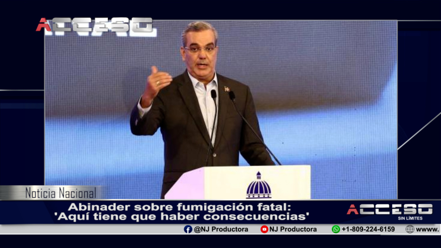 El presidente Luis Abinader manifestó que la intoxicación provocada por una fumigación doméstica al parecer con productos industriales debe acarrear consecuencias. El jefe de Estado aludió así a la muerte de una madre y su bebé y la hospitalización de otras tres personas envenenadas con la fumigación de un apartamento vecino al de las víctimas, en el sector Piantini, en el Distrito Nacional.“Aquí tiene que haber consecuencias por los que actuaron; que sean homicidios involuntarios, bueno, pero tiene que haber consecuencias. Primero, porque buscar una persona que no es fumigador para que haga eso, y eso además atribuirse capacidades y derechos que no se tiene…”, expresó el gobernante en La Semanal.Añadió de un hecho muy doloroso que se está investigando; creo que está detenida la persona que sin ser fumigador ni nada, actuó, sin tener ninguna idea del peligro que tenían esos productos”.Abogó por la revisión y el fortalecimiento de las regulaciones en el uso de este tipo de productos para evitar la repetición de esta "tan penosa tragedia, porque es una verdadera tragedia para esa familia”, finalizó el gobernante.