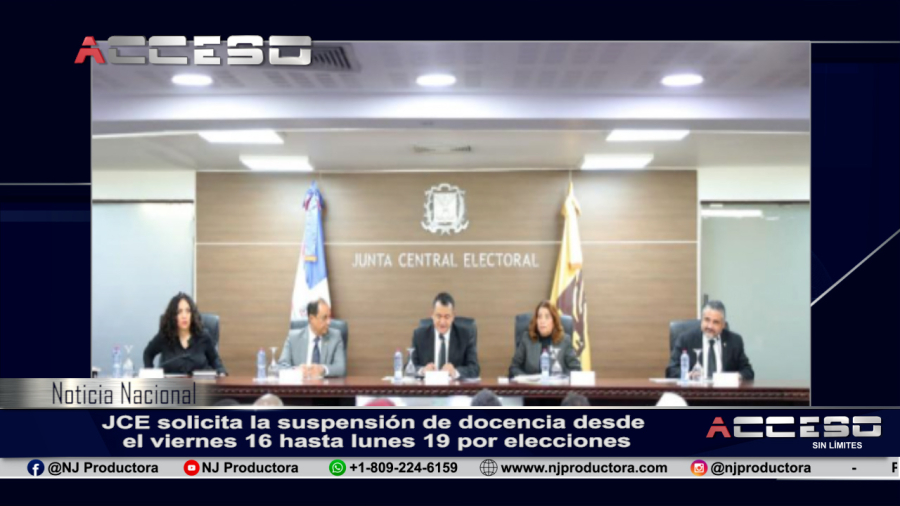 La Junta Central Electoral (JCE) solicitó al Ministerio de Educación, mediante un comunicado que disponga la suspensión de docencia en los centros educativos públicos y privados, desde el viernes 16 hasta el lunes 19 del mes de febrero de 2024, inclusive. “Asimismo, requerimos por parte de ese ministerio, las autorizaciones correspondientes en las referidas fechas para la utilización de los recintos donde funcionarán los colegios electorales con ocasión de la celebración de las elecciones generales ordinarias del 18 del presente mes de febrero y en las cuales serán elegidas las autoridades municipales que ejercerán su mandato para el período 2024-2028”, dice el documento.La comunicación, dirigida hacia el ministro Ángel Hernández, explica que para las citadas elecciones han sido habilitados 16,851 colegios electorales, que serán instalados en 4,295 recintos, la mayoría de los cuales funcionarán escuelas públicas y centros educativos privados.El viernes 16 las juntas electorales realizaran la identificación de los recintos y colegios electorales, el despliegue y distribución de las valijas que contienen los materiales electorales, los equipos de Escaneo, Digitalización y Transmisión de los Resultados Electorales (EDET) que se utilizarán en las elecciones por ante cada colegio electoral y que serán instalados el sábado 17 de febrero de 2024, a primeras horas de la mañana.“En virtud de las razones previamente expuestas, la JCE, como órgano de la administración electoral, encargado de la celebración de las elecciones, requiere disponer de los recintos ubicados en las escuelas públicas y centros educativos privados donde funcionarán los colegios electorales a nivel nacional desde el viernes 16 de febrero de 2024”, señala el comunicado.La JCE, a través de las juntas electorales, adoptará todas las medidas de seguridad, cuidado y preservación de estos, para ser devueltos, posteriormente el lunes 19 de febrero de 2024, bajo las condiciones de limpieza que permitan su utilización habitual.