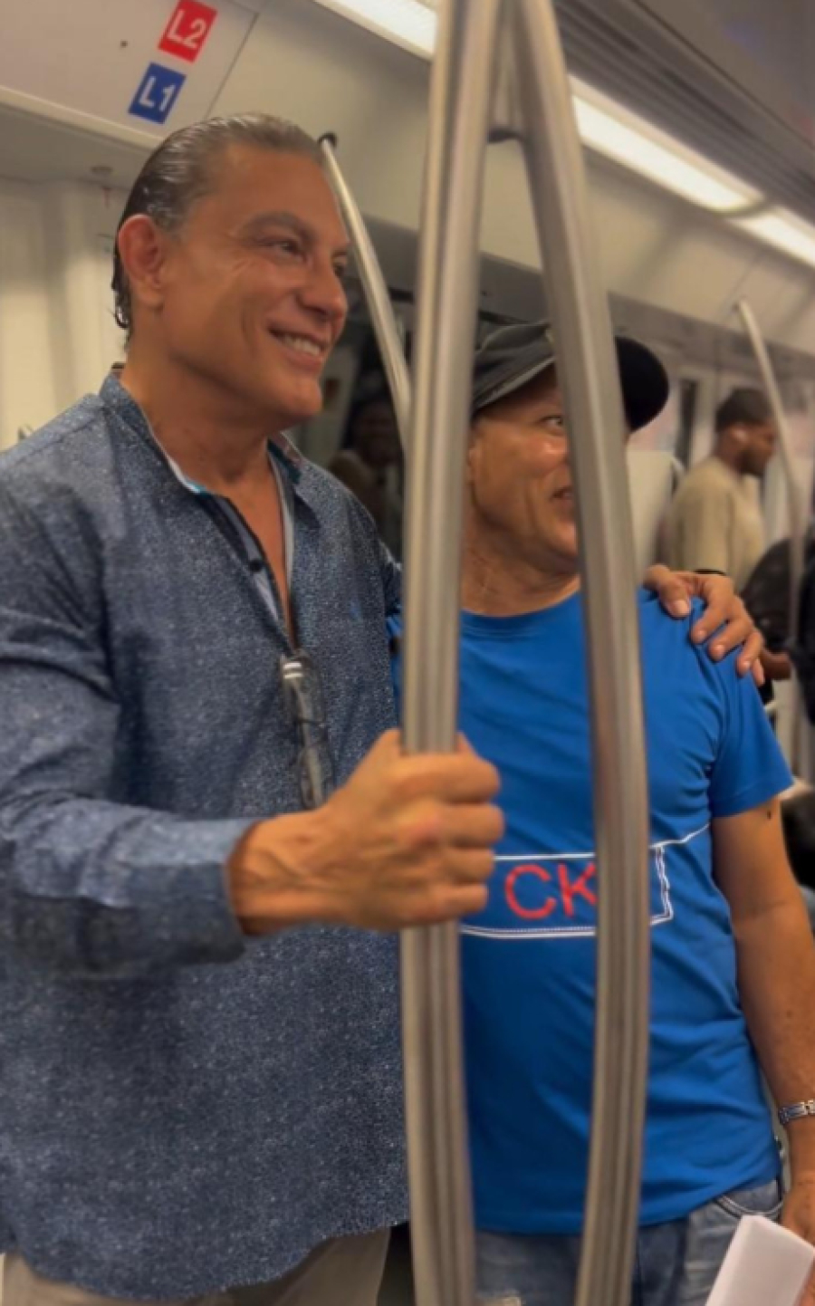 El actor puertorriqueño Osvaldo Ríos se encuentra en República Dominicana filmando su próximo proyecto cinematográfico y aprovechó para darse un “baño de pueblo” subiéndose al Metro de Santo Domingo y compartiendo con los usuarios de ese transporte. A través de sus redes sociales, el protagonista de la telenovela “ Kassandra” compartió las imágenes.“Yo siempre le digo a ellos (a su equipo) yo no quiero andar en un vehículo así de primera categoría, vamos para el metro porque yo quiero darme un baño de pueblo”, dijo el actor, de 63 años.En el video se le ve en el metro junto a las personas mientras le aplauden y se toman fotos con él.“Quería darme un bañito de pueblo con ustedes (…) Yo le dije, vamos a meternos en el metro porque quiero darme un bañito de pueblo y conocer al pueblo dominicano”, dijo el actor a las personas en el metro y aprovechó para agradecer el apoyo que le dan en sus redes sociales.Ríos, quien tiene varios días en el país, no ha dado detalles de proyecto que está grabando, peor ha compartido imágenes junto a Jackeline Estévez cantando a dúo con ella. También junto a la actriz y productora dominicana, Celines Toribio, quien se encuentra grabando su próxima película “La novia del Atlántico”.Ríos es recordado por sus famosos papeles en telenovelas como “Tres destinos”, “Gata Salvaje”, “Triunfo del amor”, “Abrázame muy fuerte”, “El Juramento”, entre otras.También por su relación amorosa con la artista colombiana Shakira.