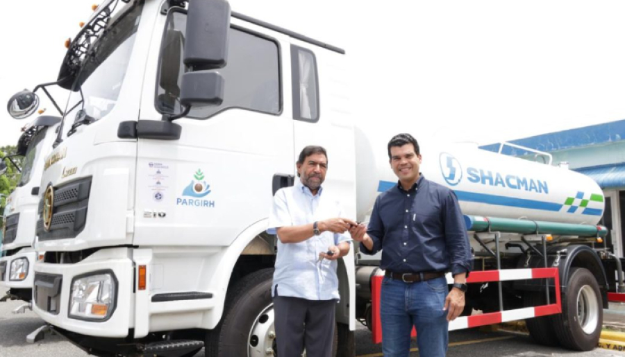 El director ejecutivo del Instituto Nacional de Aguas Potables y Alcantarillados (INAPA), Wellington Arnaud, recibió dos camiones cisterna de manos del director ejecutivo del Instituto Nacional de Recursos Hidráulicos (Indrhi), Olmedo Caba, para suplir de agua potable territorios que forman parte del Proyecto Agricultura Resiliente y Gestión Integrada de los Recursos Hídricos en las Cuencas Hidrográficas Yaque del Norte y Ozama-Isabela (PARGIRH). Wellington Arnaud reconoció el liderazgo y la responsabilidad con que el Indrhi ha llevado la dirección del proyecto.«Yo quiero felicitar al Indrhi porque ha llevado el proceso conforme al cronograma cumpliendo con los compromisos que establece un acuerdo de esta magnitud con el Banco Mundial, lo cual habla muy bien de Olmedo y todo su equipo», manifestó.El funcionario se mostró agradecido de formar parte del equipo que desarrolla la iniciativa, debido a que se resolverán problemas que afectan al país desde hace muchos años.«Desde el INAPA seguiremos contribuyendo para que este proyecto siga avanzando y mejorando la vida de los dominicanos», expresó. Mientras que el director ejecutivo del Indrhi agradeció a las demás instituciones involucradas por el apoyo y la confianza que han brindado al oorganismo para la dirección del proyecto y adelantó que en los próximos meses entregarán más equipos.En la actividad, Arnaud estuvo acompañado por el subdirector Wáscar Martínez y el encargado de Transportación, Carlos Lalane, entre otros.El PARGIRH es un proyecto que desarrollará el organismo hidráulico, gracias a las citadas instituciones, así como los ministerios de Agricultura y de Medio Ambiente, en las cuencas hidrográficas Yaque del Norte y Ozama-Isabela, financiado por el Banco Mundial por un monto de US$80,000,000, e impactará directamente las provincias Dajabón, Monte Cristi, La Vega, Santiago Rodríguez, Valverde, Monte Plata y Puerto Plata, así como el Gran Santo Domingo.