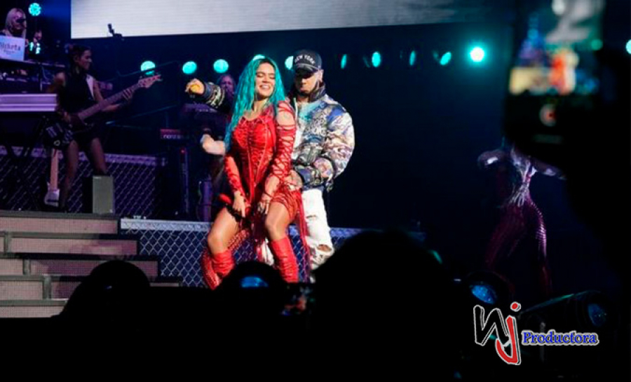 Fue en el momento en que Karol G comenzaba el medley de “Culpables” y “Secreto” que el artista apareció mientras el público estallaba en euforia.