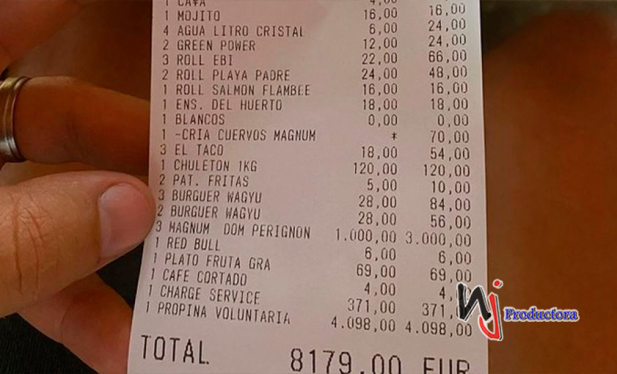 Esta queja llegó a oídos de Raúl Castañeda, quien, junto a seis personas más, reservó la misma mesa, la 17, para cenar el pasado 22 de agosto, y cuando llegó el momento de pagar pidió que incluyesen en la factura la misma propina de la factura del cliente que se quejó en su día, es decir, que dejó 4.098 euros extra y la factura que pagó ascendió a 8.179.