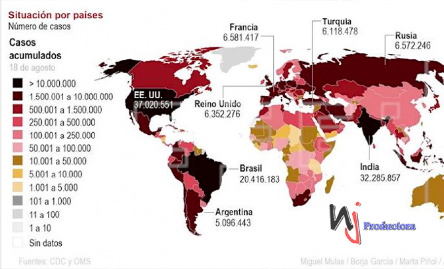 Los casos de covid-19 detectados a nivel mundial aumentaron en 4,4 millones en la última semana comprendida en el reporte epidemiológico publicado hoy por la Organización Mundial de la Salud (OMS), que señala que los continentes de América y Europa fueron los dos con la mayor tasa de incidencia, de 147,4 y 121,6 nuevos casos por cada 100.000 habitantes, respectivamente.