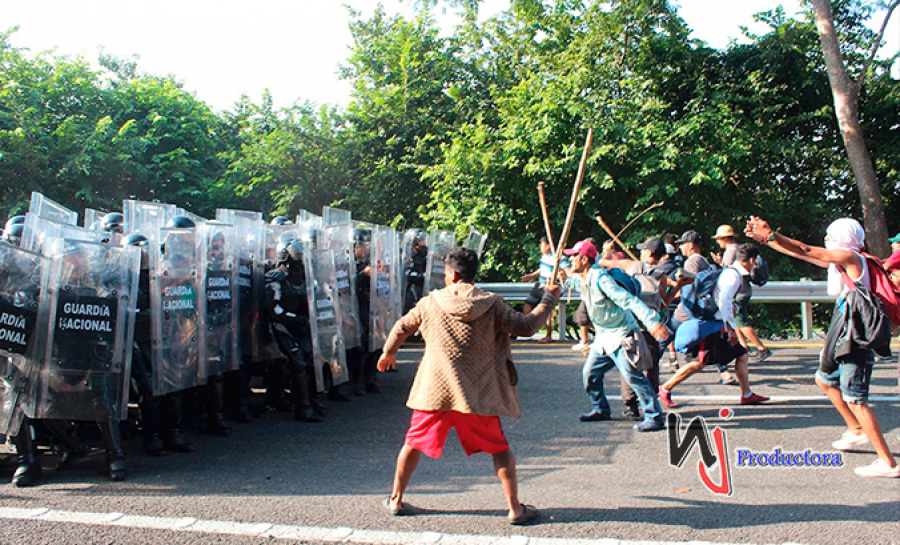 La caravana había reemprendido la marcha esta mañana. Salió de Pijijiapan, con rumbo a Tonalá. Sin embargo, fueron interceptados por el operativo de la Guardia Nacional y el Instituto Nacional de Migración, contra quienes los migrantes respondieron lanzando piedras y enfrentando con palos y otros objetos a los uniformados.