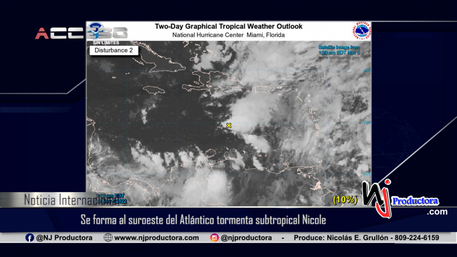Según informó el Centro Nacional de Huracanes de Estados Unidos (NHC, por sus siglas en inglés), aproximadamente a las 4:00 de la madrugada de este lunes, se formó la tormenta subtropical Nicole al suroeste del océano Atlántico.