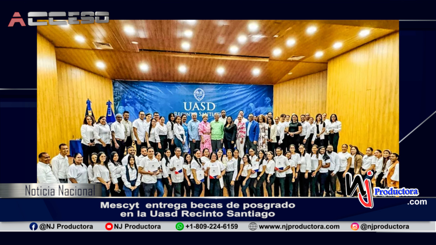El Ministerio de Educación Superior Ciencia y Tecnología (MESCYT), a través de la Dirección de Becas Nacionales, entregó cien becas de postgrado a estudiantes de la Universidad Autónoma de Santo Domingo (UASD) Recinto Santiago. El acto, celebrado en el auditorio de la Biblioteca Prof. Juan Bosch de la UASD Recinto Santiago, contó con la presencia de autoridades académicas, representantes del Mescyt y estudiantes beneficiados.Las becas que beneficiarán a cien estudiantes serán en maestría en Evaluación de Instituciones Educativas, maestría en Geografía para Educadores y maestría en Gestión de la Calidad del Laboratorio Clínico, permitirá la especialización y formación avanzada en diversas áreas del conocimiento.El maestro Juan Arias Fuentes, director general de la UASD Recinto Santiago, expresó su agradecimiento al presidente de la República Luis Abinader y al ministro de Educación Ciencia y Tecnología, Franklin García Fermín, por el apoyo continuo a la universidad y por brindar oportunidades a los estudiantes de continuar su formación académica a nivel de postgrado y la importancia de estas becas para la consolidación del conocimiento y fortalecimiento del desarrollo profesional en el país.Por su parte, Lanny Portorreal Navarro, encargada de la Dirección General de Becas Nacionales, en representación del Mescyt, señaló que la entrega de estas becas forma parte de una política pública orientada a elevar la calidad educativa y fomentar la investigación científica en la República Dominicana, impulsando a los estudiantes a convertirse en líderes en sus respectivas áreas.“Uno de los pilares del desarrollo del país, tiene como objetivo coordinar, gestionar y promover la cualificación de los profesionales y estudiantes a través de apoyos económicos que fluyen para garantizar la igualdad de oportunidades y la inclusión educativa, superando cualquier circunstancia que bloquee el acceso de los ciudadanos a una formación integral en el nivel superior”, aseguró.De su lado, maestro Carlos Arroyo, coordinador Unidad de Postgrado de la UASD Recinto Santiago, manifestó que hoy no solo está recibiendo una simple carta, es una certificación que le permite el ingreso a un programa que le va a permitir transformarse y aportar para el cambio de la sociedad, porque deben tomarlo con mucha responsabilidad, el cual implicaría dedicarse a tiempo completo en su respectiva maestría.