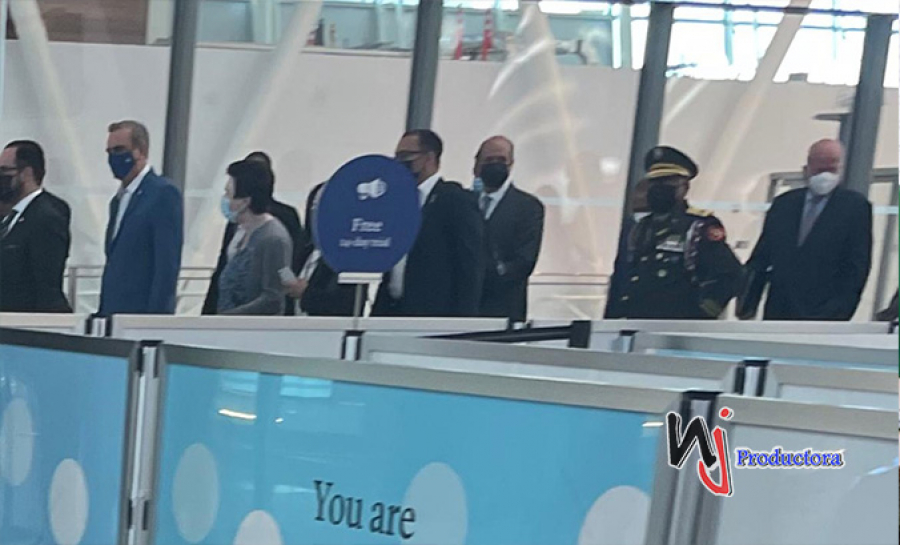 Abinader llegó junto a su esposa, Raquel Arbaje y el ministro Administrativo de la Presidencia, José Ignacio Paliza, asi como del expelotero de Grandes Ligas Moisés Alou, los asistentes Eilyn Beltran y Mercedes Pichardo, y miembros de su equipo de seguridad, encabezado por el mayor general Celin Rubio.