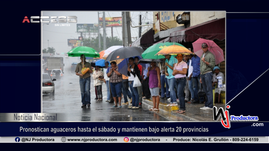 La Oficina Nacional de Meteorología (Onamet) informó que este jueves, viernes y sábado continuarán los aguaceros por la incidencia de una vaguada, en tanto que 20 provincias se mantienen en alerta.