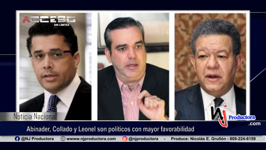 Luis Abinader con un 52% y David Collado con 51% son los políticos dominicanos vistos más favorablemente, seguidos de Leonel Fernández con un 42% y Abel Martínez con 40%, según una encuesta realizada por la firma Mark Penn/Stagwell, cuyo principal representante es el economista e historiógrafo Bernardo Vega.