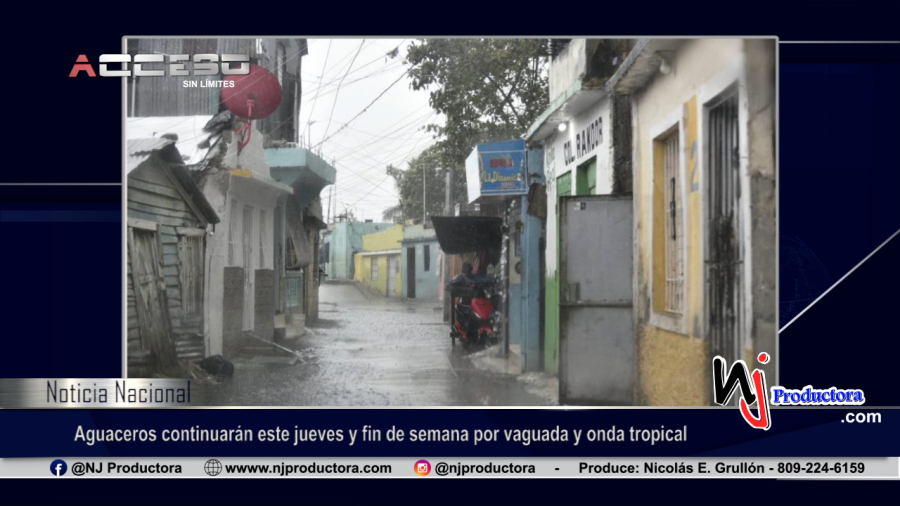 Los aguaceros continuarán sobre el país este jueves, viernes y sábado por la incidencia de una vaguada, mientras que unas ocho provincias se mantienen en alerta, incluyendo el Gran Santo Domingo.