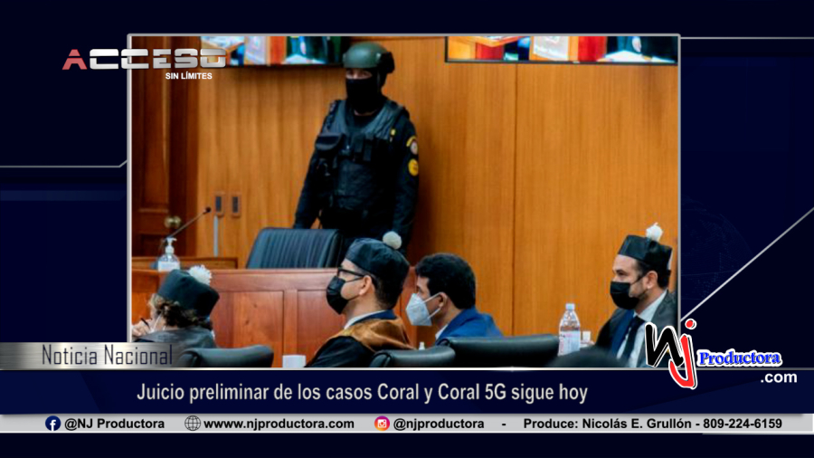 La jueza Yanibet Rivas del Sexto Juzgado de Instrucción del Distrito Nacional, continúa este lunes con el juicio preliminar que se sigue a los imputados de las operaciones Coral y Coral 5G, acusados por el Ministerio Público de corrupción administrativa.