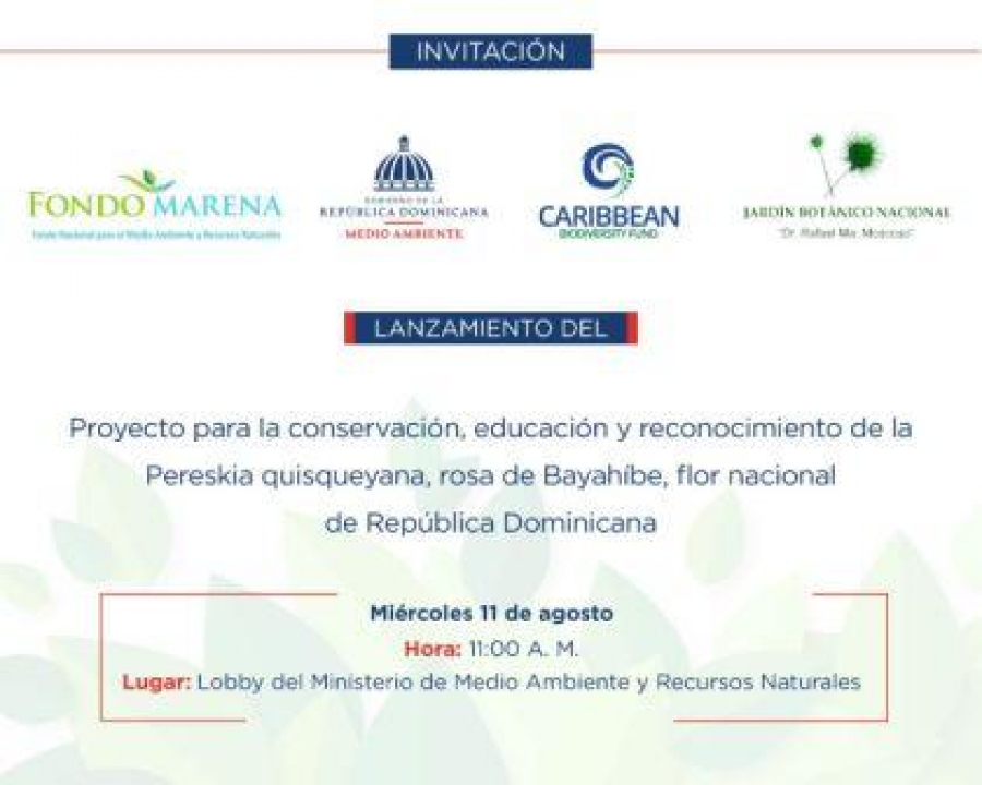Lanzamiento del proyecto de la conservación de la Flor De Bayahibe, 11 de agosto, 11AM, Lobby del Ministerio de Medio Ambiente