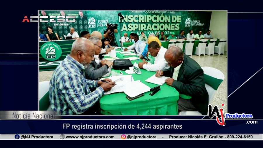 El partido Fuerza del Pueblo que dirige y lidera el presidente Leonel Fernández informó que 4,244 aspirantes a cargo de elección popular acudieron sábado y domingo a los locales del partido Fuerza del Pueblo a formalizar el proceso de inscripción que habían iniciado vía digital.Los militantes y dirigentes de la entidad política opositora de las circunscripciones electorales del Distrito Nacional y la provincia Santo Domingo acudieron, desde tempranas horas de este sábado y domingo, a la sede principal de la FP ubicado en la avenida Simón Bolívar esquina Dr. Báez del sector Gascue para depositar los documentos requeridos para la formalización de las aspiraciones electivas.En las provincias y circunscripciones del exterior, la recepción de documentos se realizó en los locales y centros habilitados al respecto, donde los aspirantes a puestos congresuales, municipales y distritos municipales, juntos a sus seguidores y simpatizantes formalizaron sus aspiraciones.La jornada de inscripción de la principal fuerza política opositora del país terminó siendo una fiesta de la democracia, con gran algarabía y el entusiasmo reino entre los aspirantes y seguidores.Como aspirantes en los siete (7) de elección popular fueron inscritos 4,244., de los cuales formalizaron sus aspiraciones en el Gran Santo Domingo y el Distrito Nacional 829 militantes de la FP.En la región del Cibao los aspirantes a puestos de elección popular que confirman sus aspiraciones ascienden a la suma de 1599 en la región Sur 1431 precandidatos en el Este 410 y el Exterior 45 aspirantes.Las edades de los aspirantes a diferentes puestos de elección por la Fuerza del Pueblo oscilan entre 18 a 46 años en adelante; entre 18-36 años fueron inscritos un 18.52 por ciento, mientras que entre 37-45 años se inscribió un 30.04 por ciento y de 46 años en adelante confirman su inscripción como precandidatos un 51.44 por ciento, siendo un 28.70 femeninas y 71.30 masculinos.El presidente de la Comisión Nacional Electoral (CNE) e integrante de la Dirección Política de la FP, Dr. Henry Merán, dijo que el proceso de inscripción de precandidatos y precandidatas a diversos puestos de elección ha sido una verdadera fiesta de la democracia en la capital dominicana, el gran Santo Domingo, Santiago, las provincias y municipios, recordó, además, que mantendrán las inscripciones de precandidatos en todo el país hasta el miércoles 12 del presente mes.Sábado y domingo se formalizaron los procesos de inscripción en los lugares donde una gran cantidad de militantes del partido que lidera Leonel Fernández habían realizado sus preinscripciones a los puestos en juego en los comicios pautados para febrero y mayo del 2024.Más de cuatro mil trescientos veintiocho, (4,328), militantes de la Fuerza del Pueblo habían expresado sus intenciones de aspirar a posiciones electivas en los próximos torneos electorales (senadores, diputados, alcaldes, regidores, directores de distritos), formalizando sus intenciones este fin de semana.